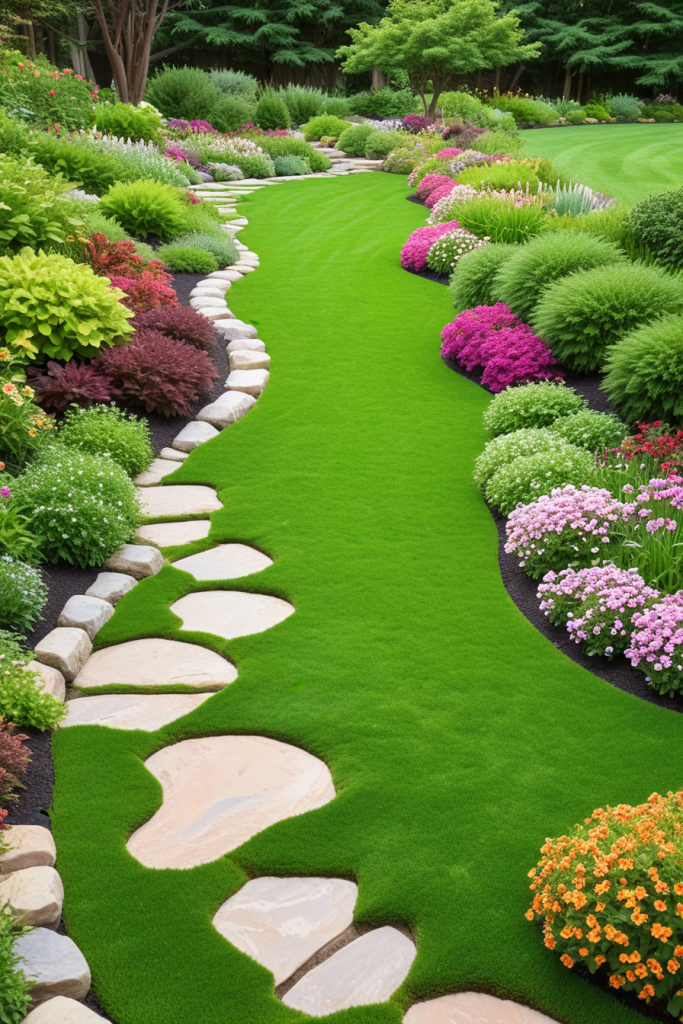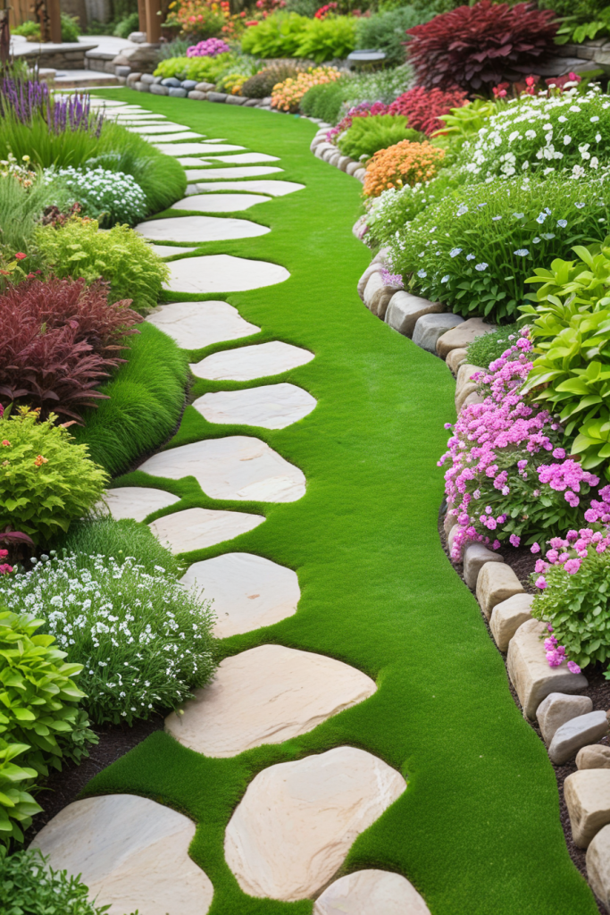 A lush green lawn adds vibrancy to any yard, but turf alternatives like moss, creeping thyme, or micro-clover provide a low-maintenance and eco-friendly option. Frame the lawn with stone pathways or flower beds for visual interest. Incorporate proper irrigation to maintain a healthy look.