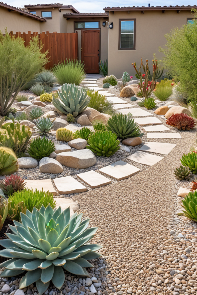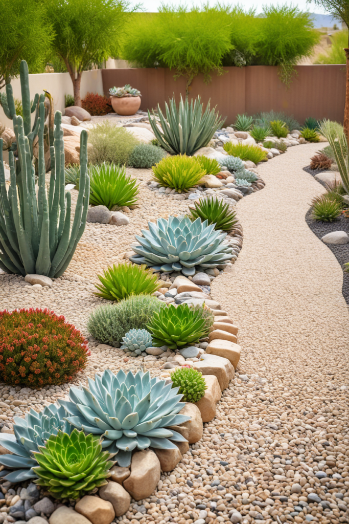 Drought-resistant landscaping combines practicality with beauty. Use xeriscaping techniques with gravel or sand as ground cover, and select drought-tolerant plants like succulents, lavender, or cacti. Install drip irrigation systems for efficient watering and group plants with similar water needs. Add rock gardens and mulch to reduce evaporation while enhancing visual appeal.