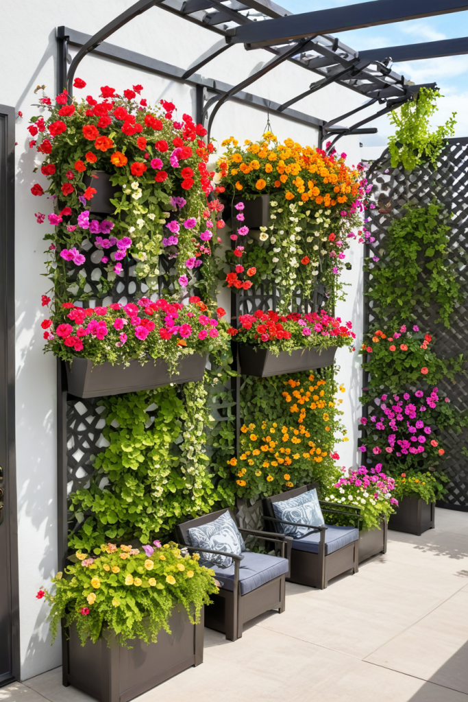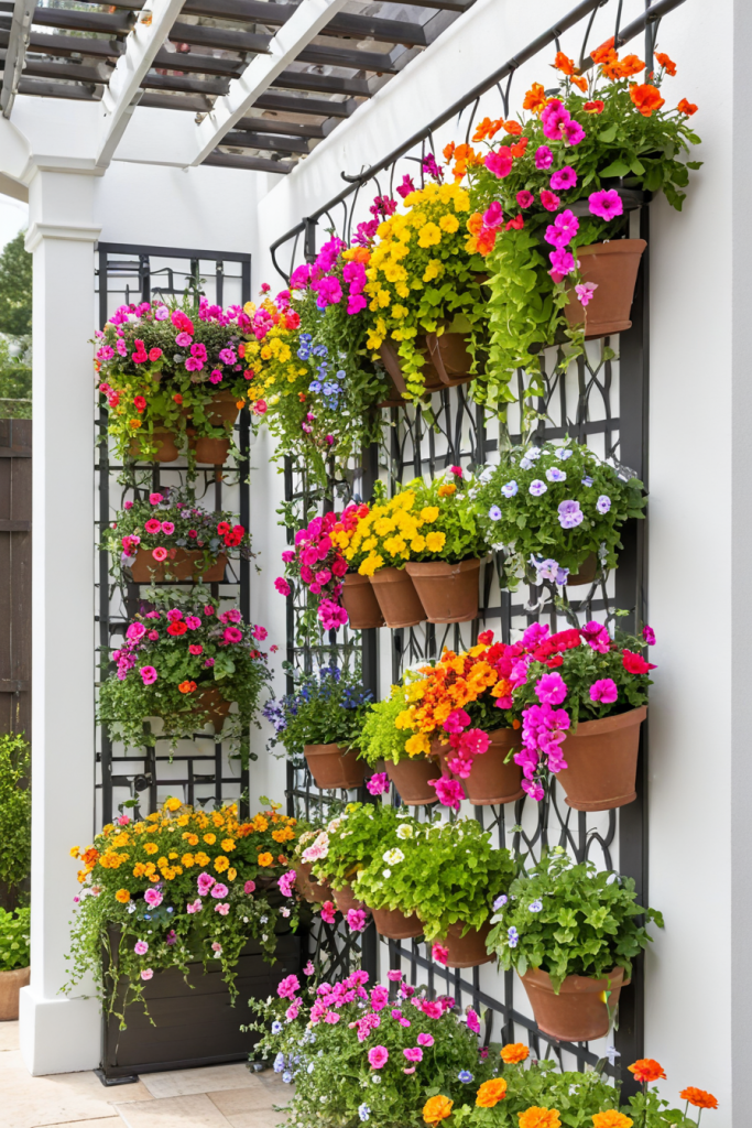 Maximize space and visual interest with vertical landscaping. Use wall-mounted planters, trellises, or vertical garden panels for flowers, herbs, or succulents. Pallets and hanging baskets are also great for small yards. Combine textures and colors to create a dynamic look, and place vertical elements strategically to draw the eye upward.