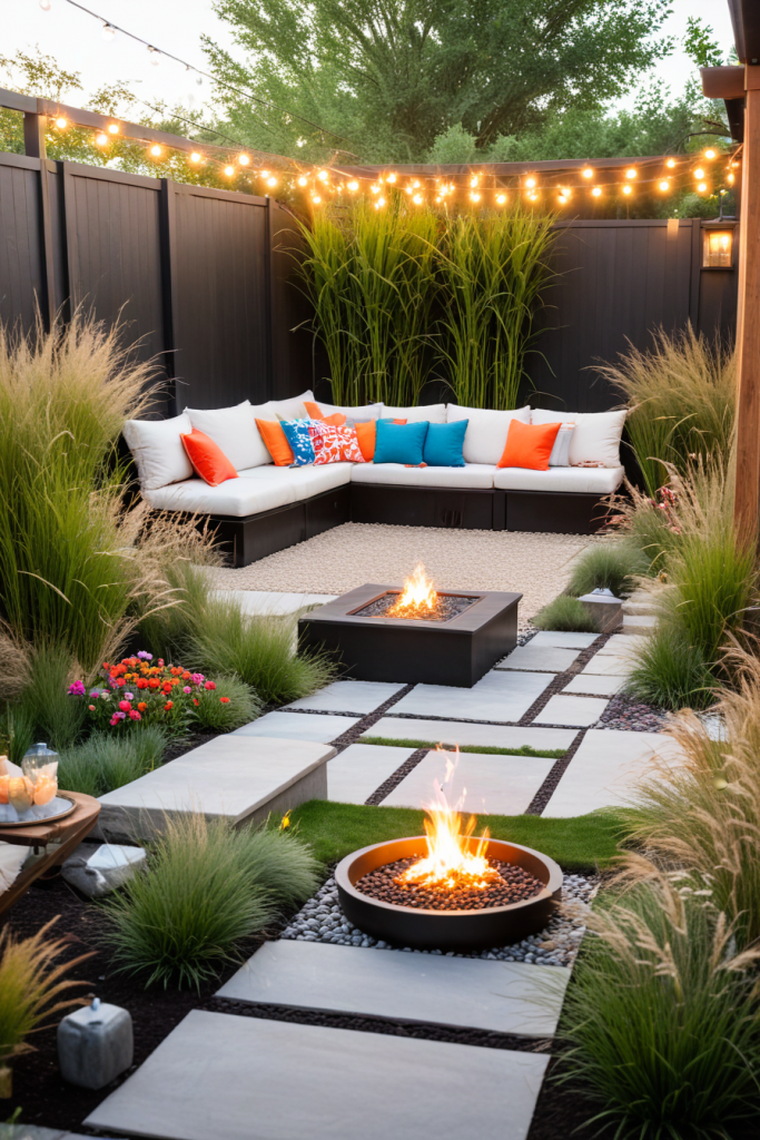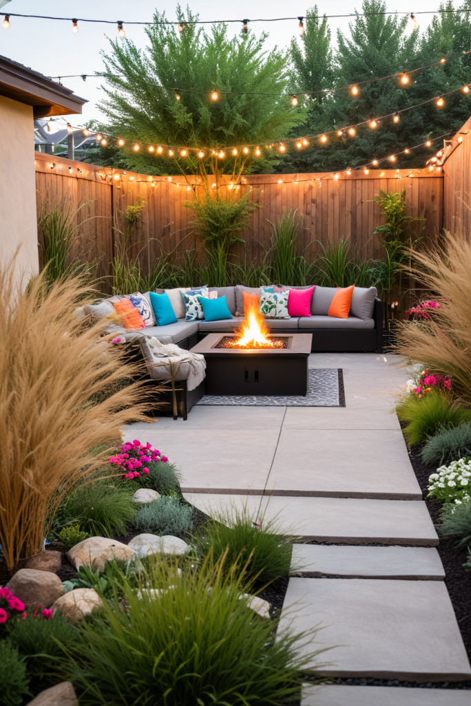 Your backyard can become a private sanctuary with thoughtful landscaping. Include a mix of lounging and dining areas with comfortable outdoor furniture, string lights, and a fire pit for evening gatherings. Surround the space with lush greenery, like bamboo or tall grasses, for privacy. Add colorful flowers and water features like a small fountain for a serene ambiance.