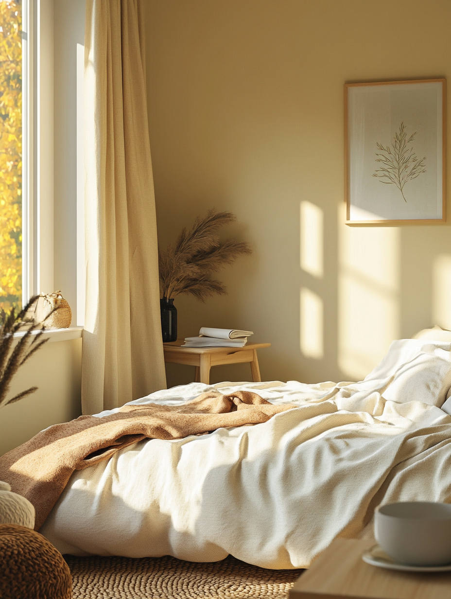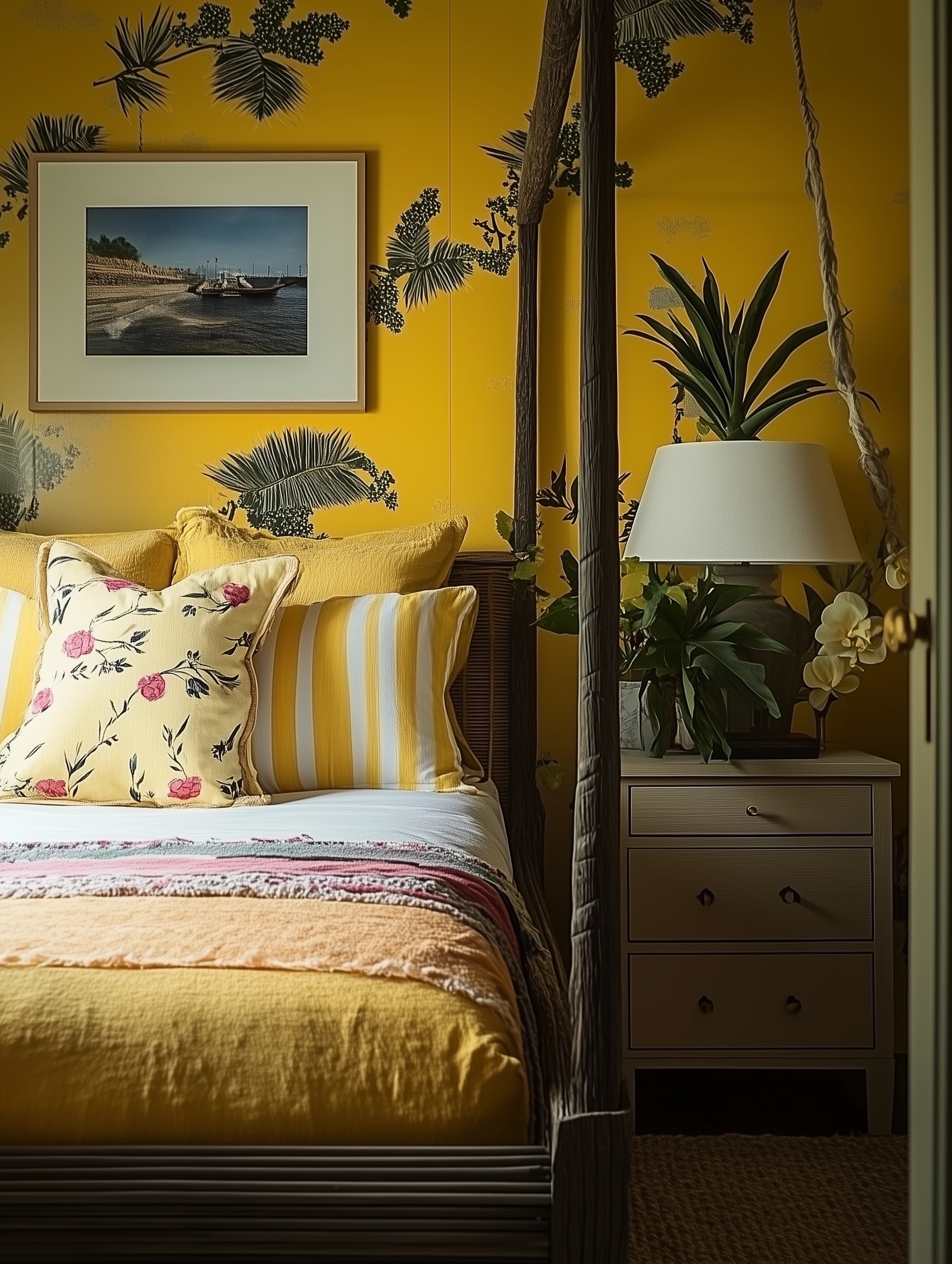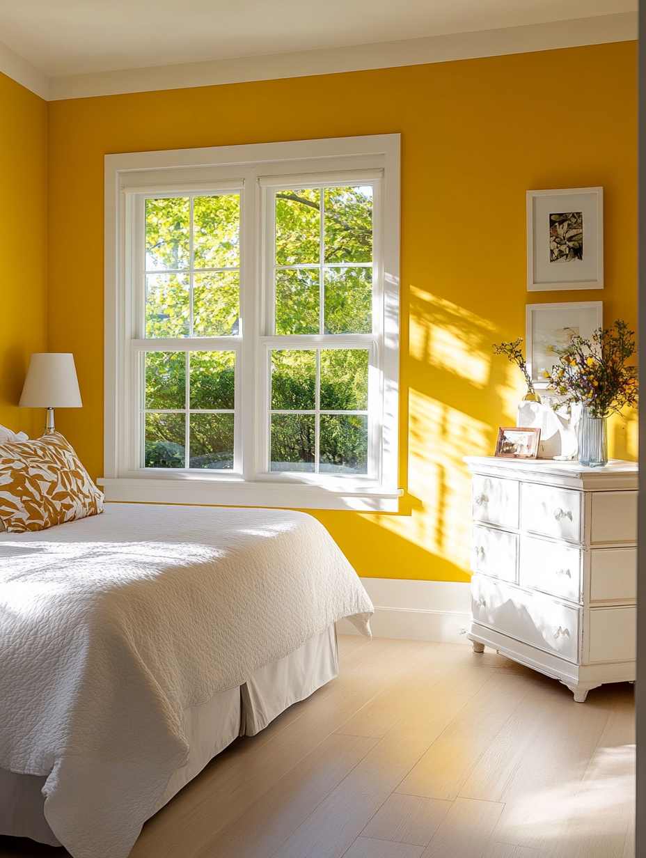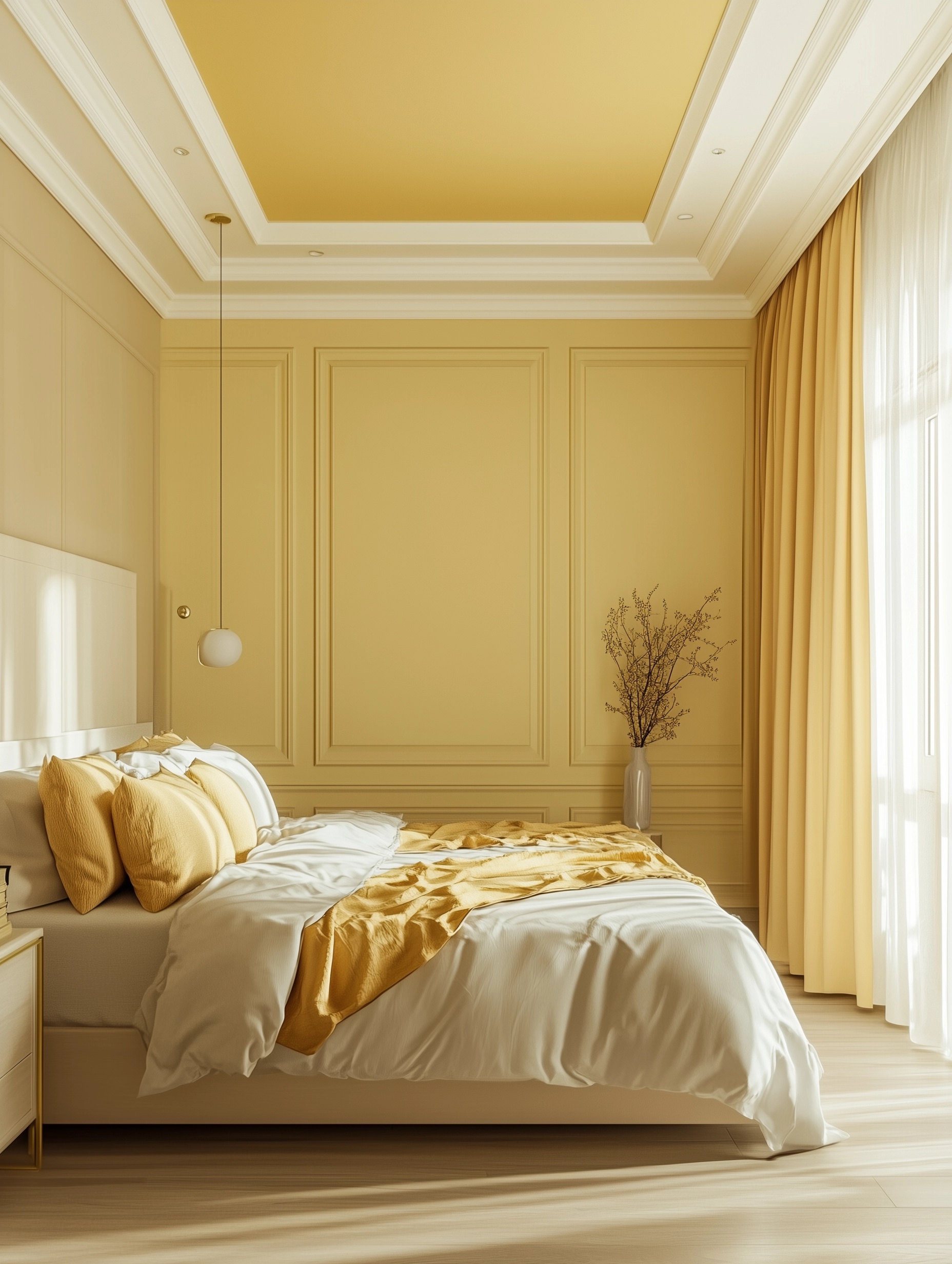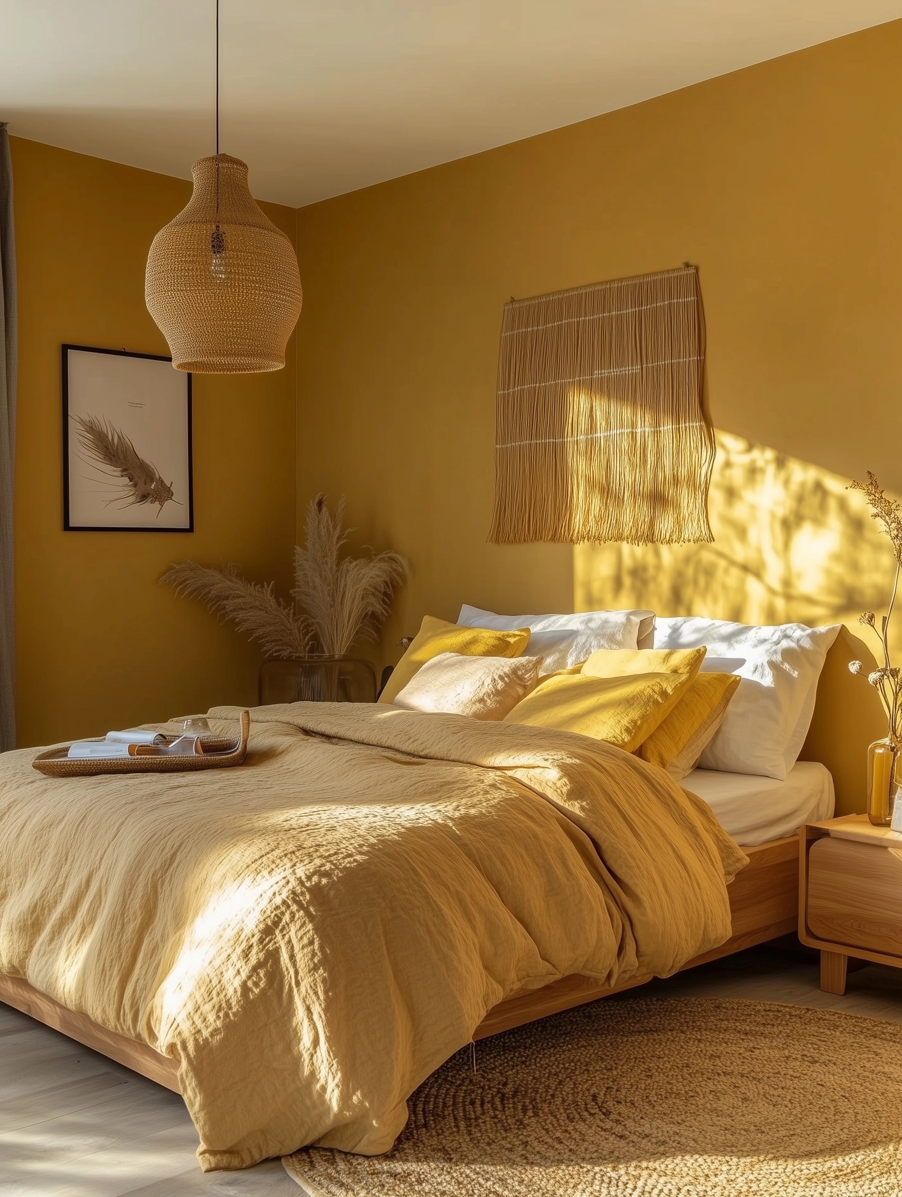The color that you choose for your bedroom is the way to set the mood and the atmosphere of the room. On the other hand, you can have both pale yellow, which is so gentle to the eyes, and mustard, which is vibing, as each color brings its magic. Light yellow walls are related to the enlarging effect on the room, but, on the other hand, some deeper hues (like mustard) add a friendly atmosphere and chillness. Try to integrate your style with the bouquet of itmas and peninsulas of natural daylight whenever you select which color to paint your bedroom.