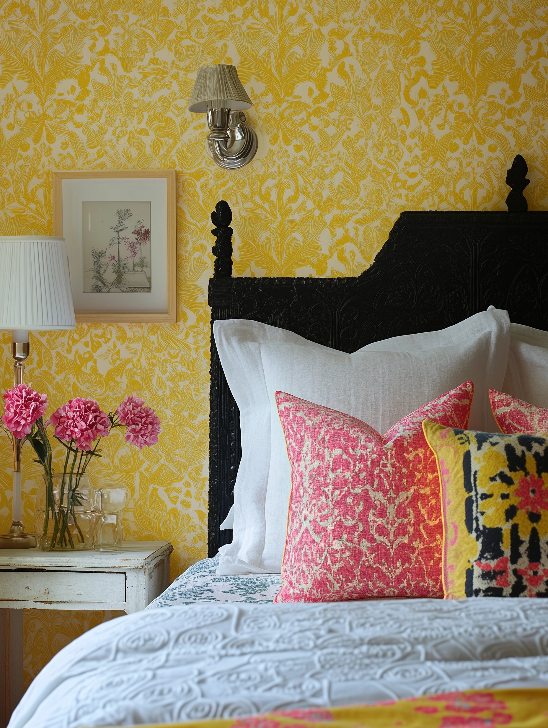 Yellow wallpaper has the potential to totally change the look of your bedroom and turn it into a bold home. For women, pink is always a good choice. Opt for patterns like stripes, damasks, or botanicals to create more dimension and personality of the space. Yellow wallpaper serves efficiently as an accent wall or it can be used on the entire room for a more attractive effect.